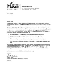 Here it is – the letter that begins my journey in earnest. None of it was real until I received this letter from GMU’s School of Public Policy …